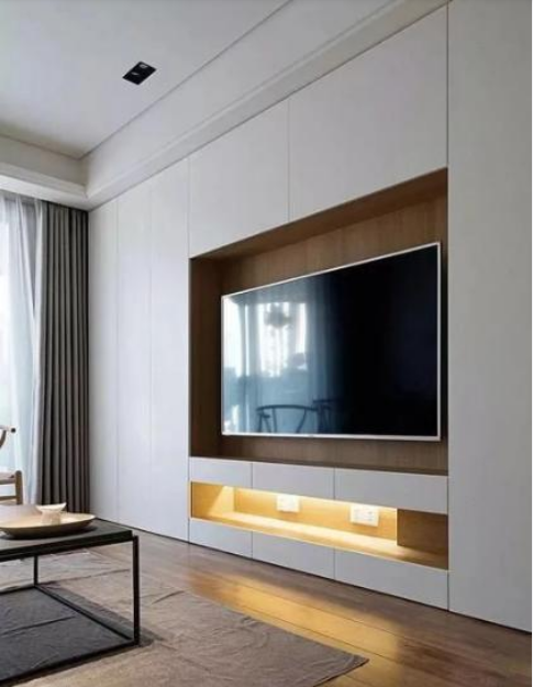 电视背景墙,没有过多的装饰和点缀,虽然简单但是整洁,适合比较崇尚简约的人群。